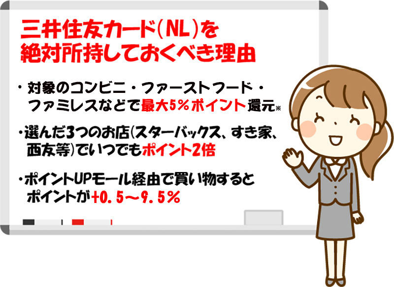 三井住友カード(NL)について、簡単にまとめますとこんな感じです。